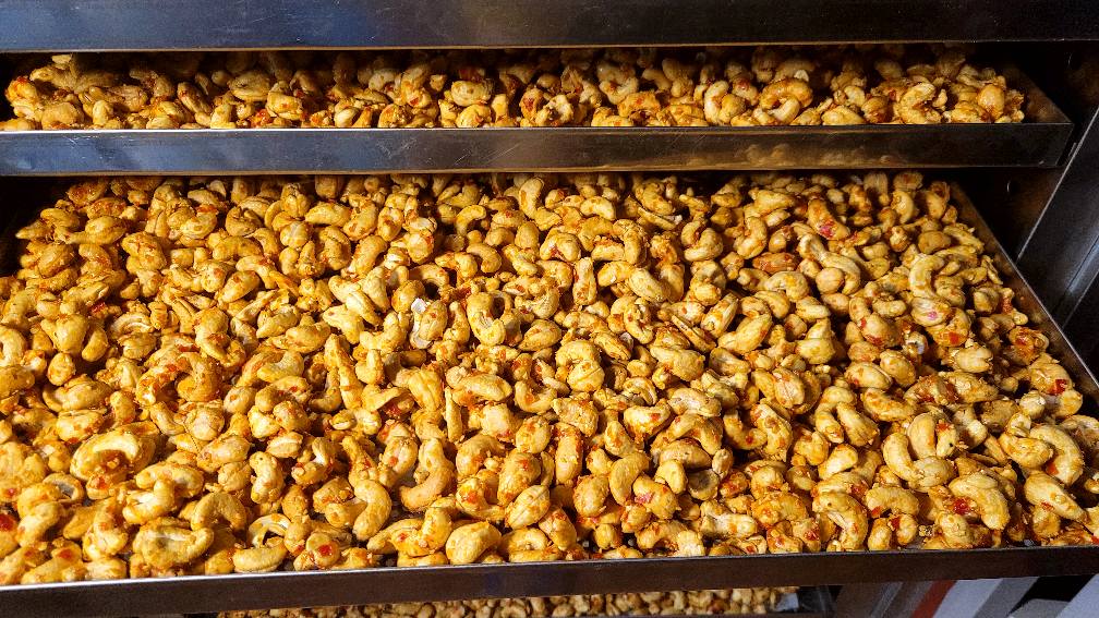 Hạt điều rang muối có vỏ lụa được sản xuất và chọn lọc kĩ lưỡng để cho ra hạt điều to tròn, chắc hạt. Hạt điều có vị giòn rụm, có vị ngọt, béo bùi…và chất lượng vẫn mang mùi vị đặc trưng do quá trình rang bằng củi để đảm bảo được hương vị thơm ngon nhất.